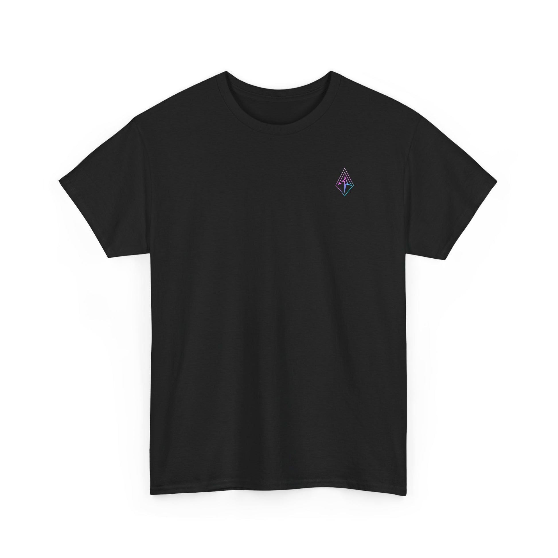 Arrow Ridge Gradient Tee — Minimal Origami Logo T-Shirt with Pastel Holographic Design