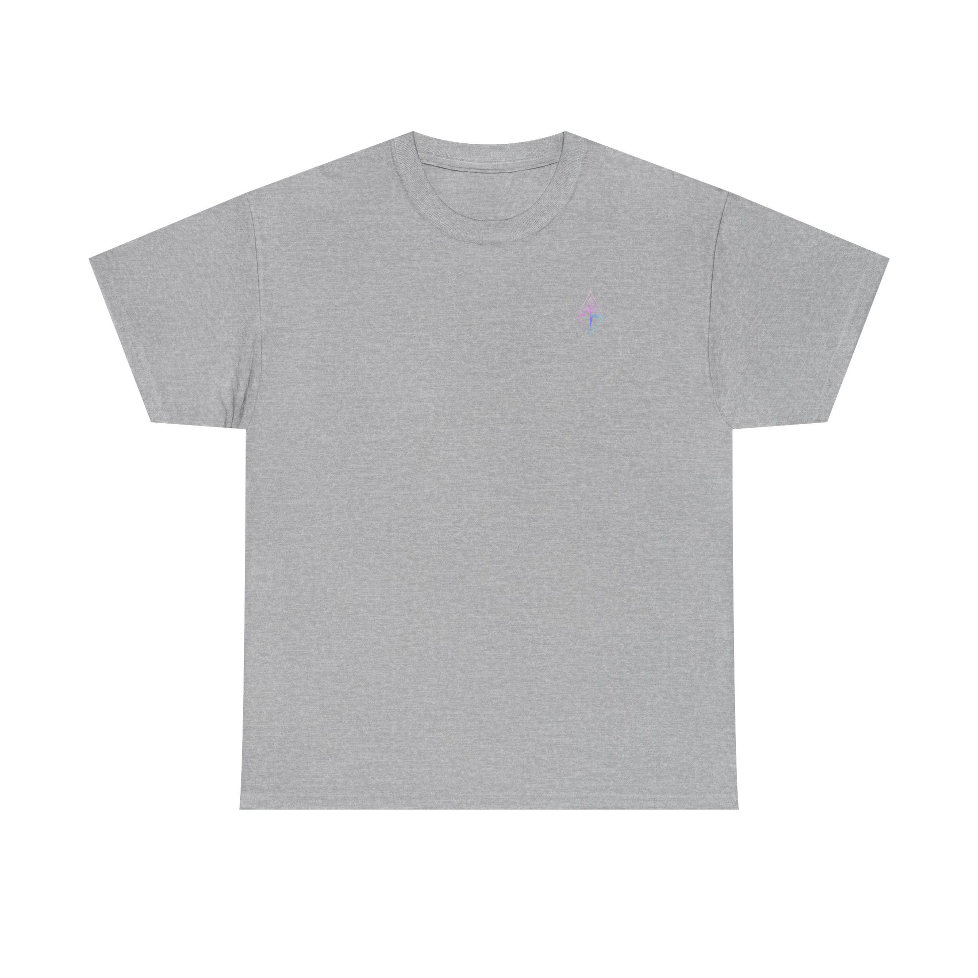 This soft, classic-fit tee carries a crisp, minimal energy—small emblem on the chest and a bold, iridescent geometric mark on the back that reads like a personal sigil. Wear it when you want your look to feel intentional but effortless: the lightweight, smooth cotton lays flat under jackets, stacks easily with hoodies, and holds printed detail with sharp color transitions. It’s the kind of shirt you reach for when you want to show subtle affiliation—an emblem that hints at community without shouting. The fabric’s natural options show tiny flecks that give a handcrafted touch, while the tear-away label, reinforced shoulder tape and tubular knit construction keep comfort steady through everyday movement.