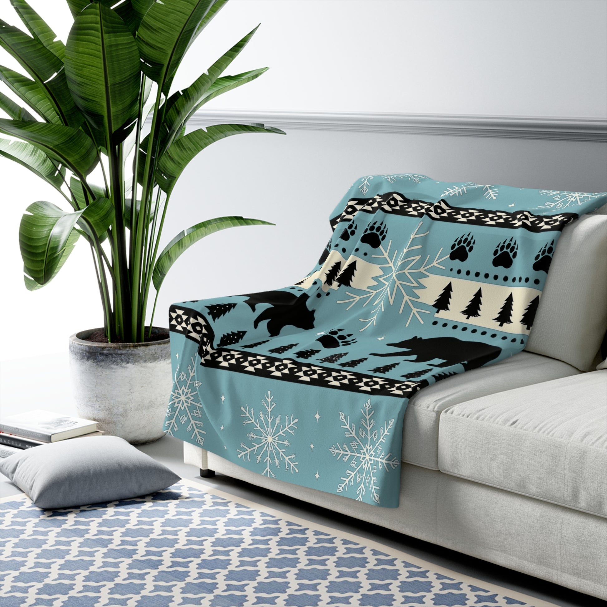 This plush sherpa fleece blanket wraps you in cabin-warm comfort with a rustic winter motif. Deep red panels are patterned with silhouettes of bears, pine trees, paw prints and large snowflakes, evoking a quiet night in the woods after fresh snowfall. The printed face holds vibrant color and detail; the velvety sherpa backing is thick and cloud-soft against skin. Throw it over the couch while you sip cocoa, drape it across the foot of a bed for lodge-style charm, or tuck it around shoulders for an evening by the fire. Built to be cozy, durable, and reliably warm, it’s a blanket that brings a woodsman’s calm and seasonal cheer to everyday life.