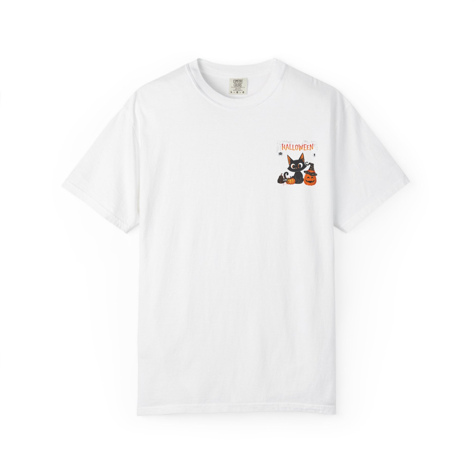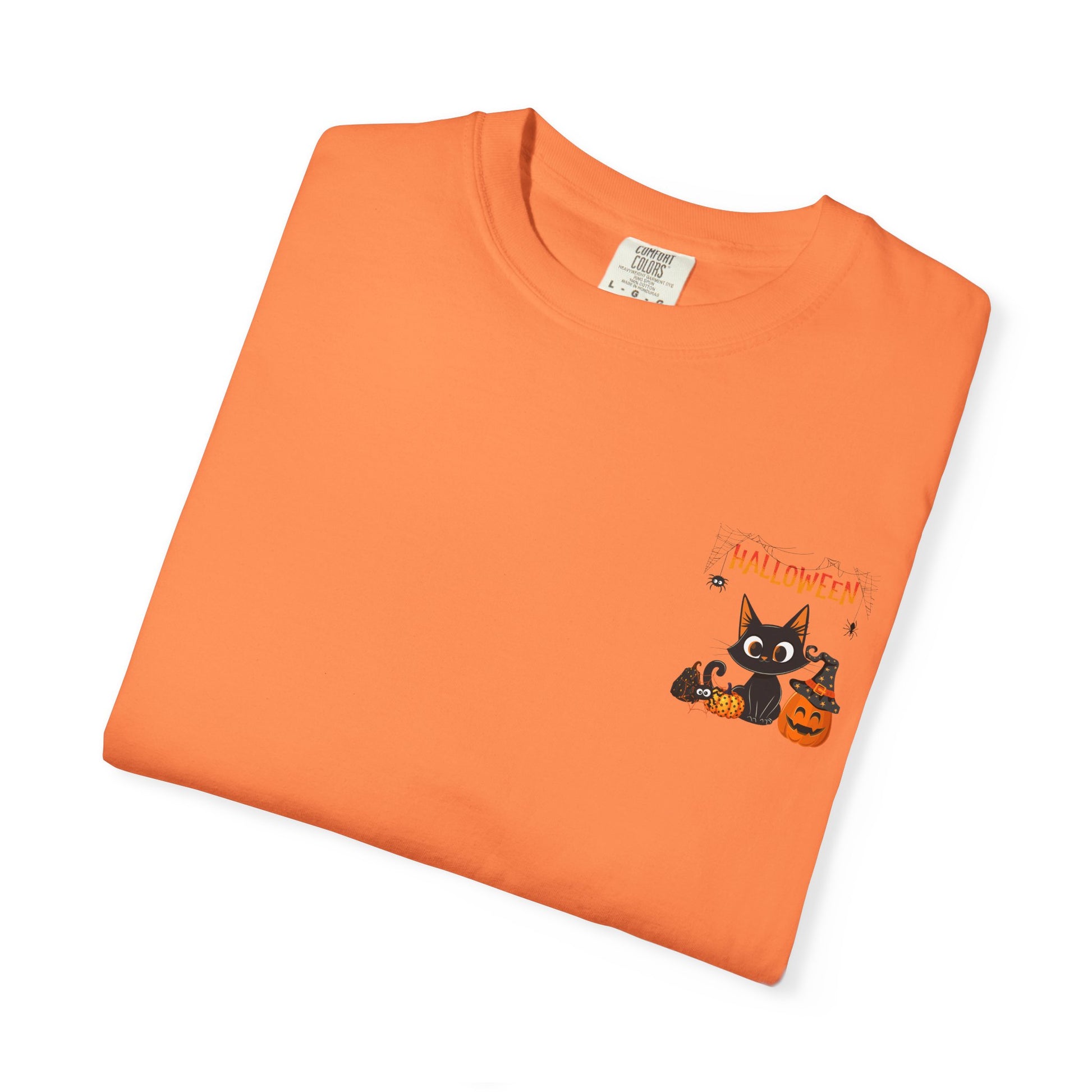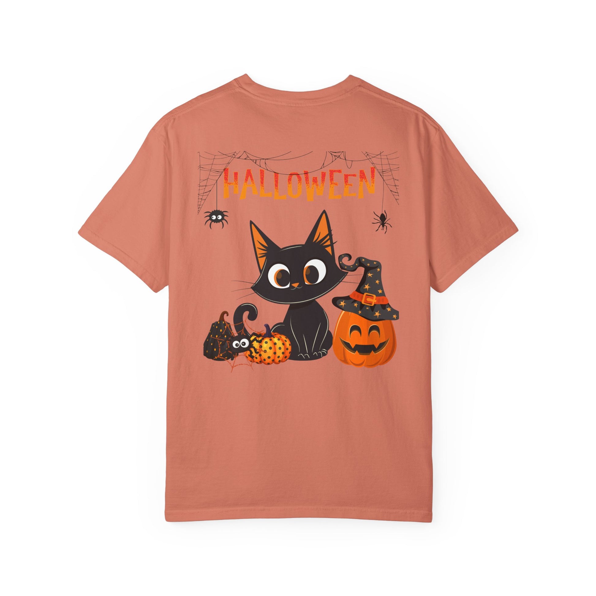 Halloween Spider Cat & Pumpkin Tee Unisex Garment-Dyed T-shirt, Black & White, Vintage Western, Western lover gifts