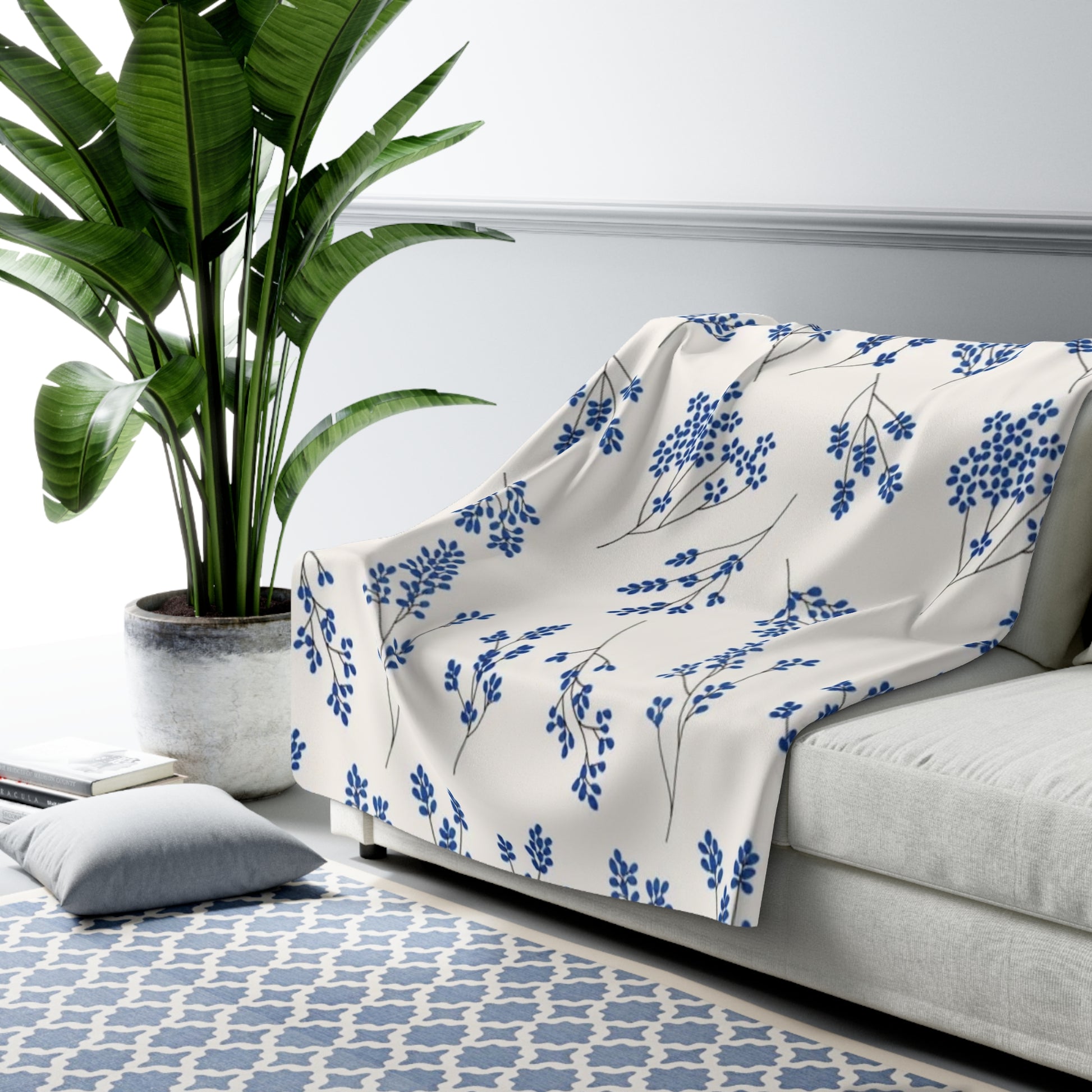Lavender Floral Sherpa Fleece Blanket | Cozy Home Decor, Perfect Gift for Her, Relaxation Throw, Mother's Day, Blankets for Winter