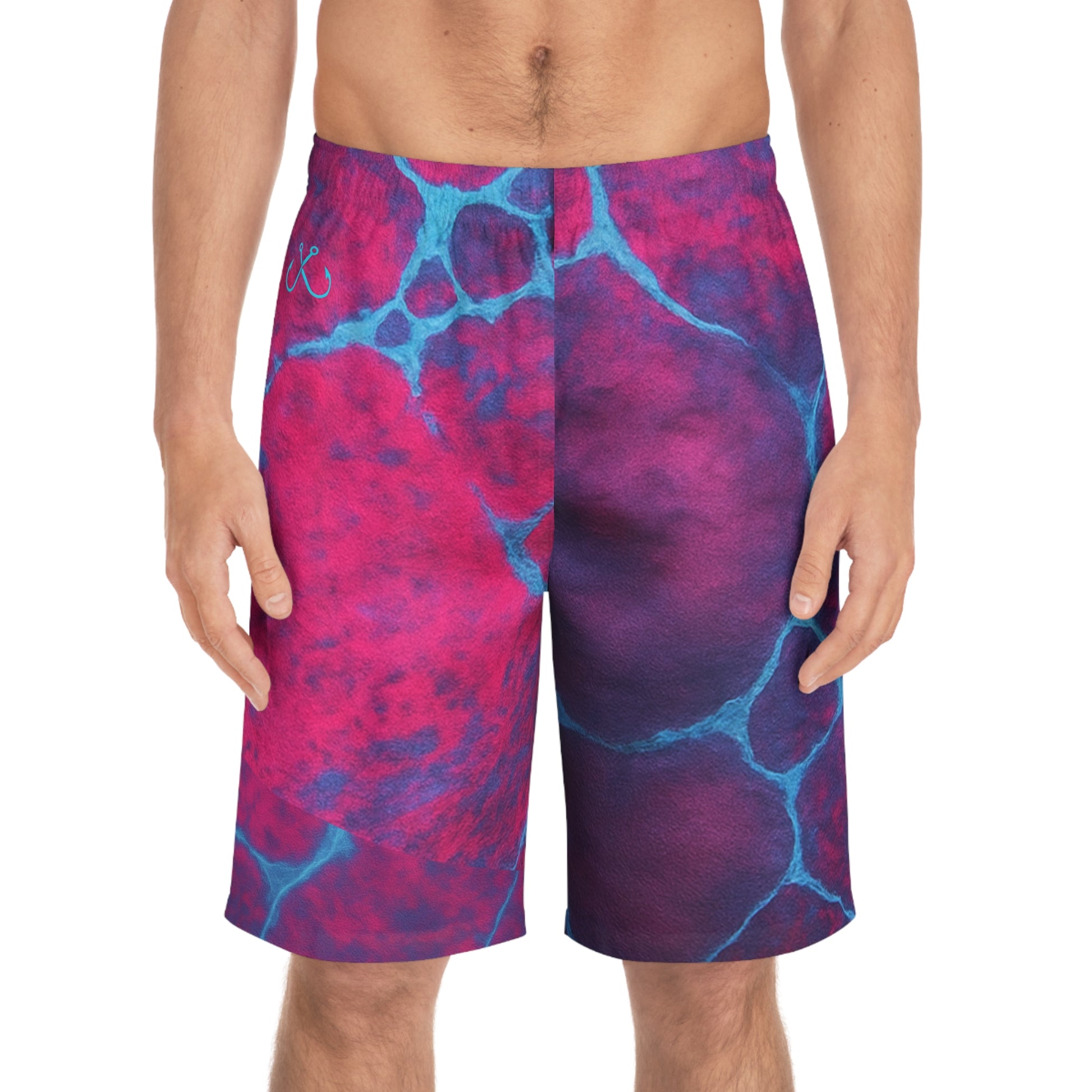Magenta and Turquoise Ocean-Inspired Board Shorts, Swimwear for Beach Days, Summer Vacations, Pool Parties, Surfing Attire, Water Sports