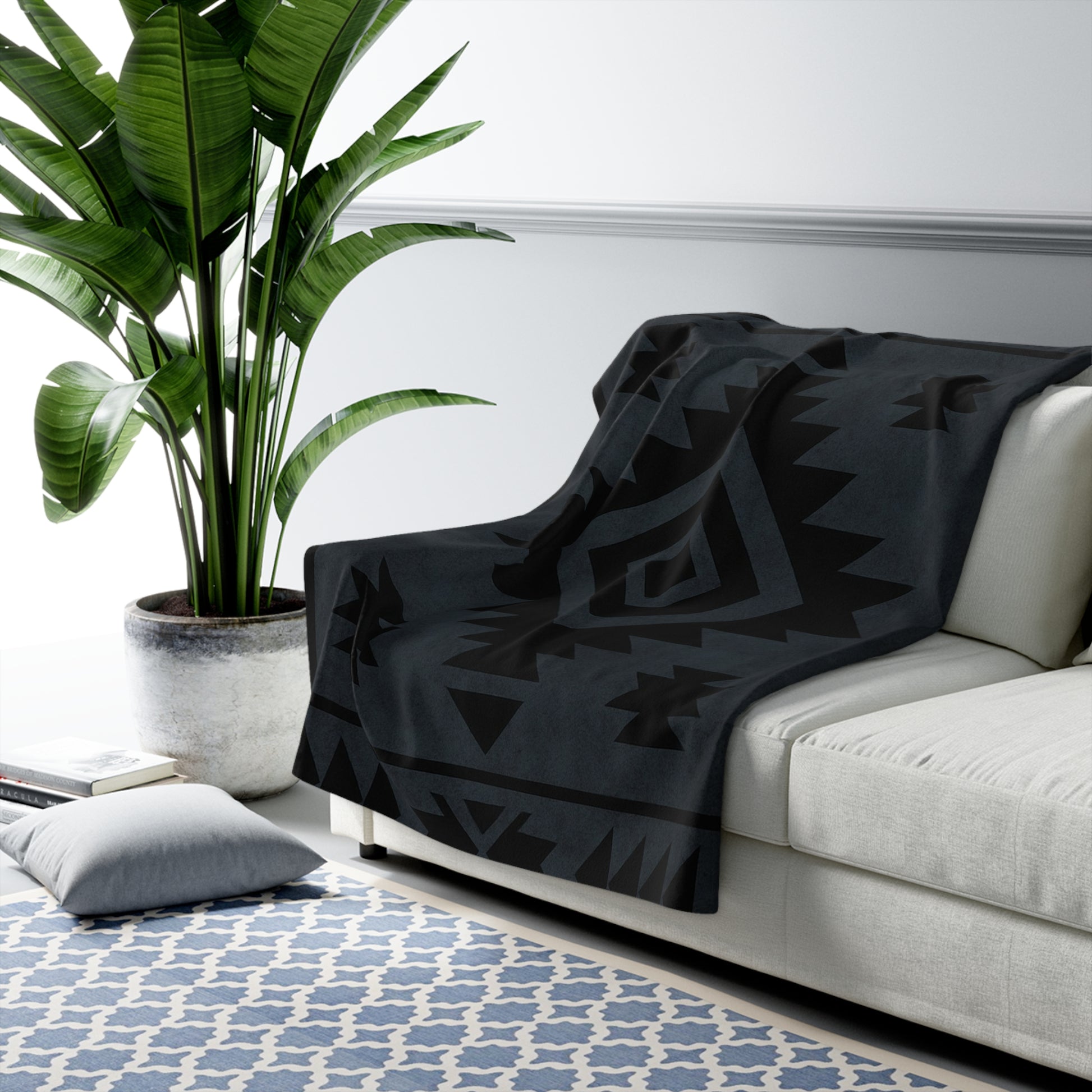 Rodney Sherpa Fleece Blanket - Modern Tribal Design, Perfect for Home Decor, Gift for Him/Her, Winter Warmth, Beach Blanket