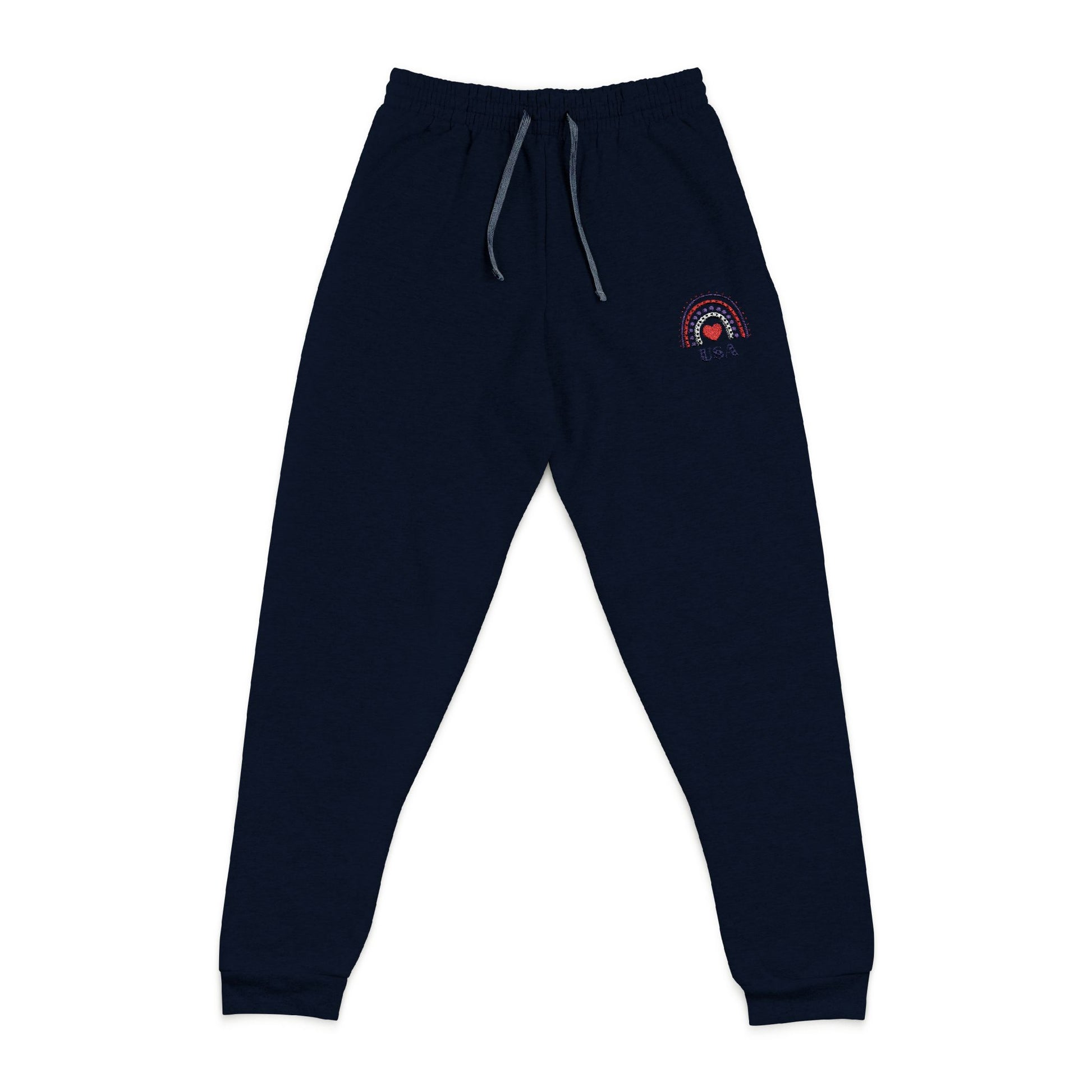 USA Patriot Embroidered Rainbow Unisex Joggers - Soft Cozy Lounge Pants for Relaxation, Gift for Her, Relaxation Wear, Rainbow Apparel