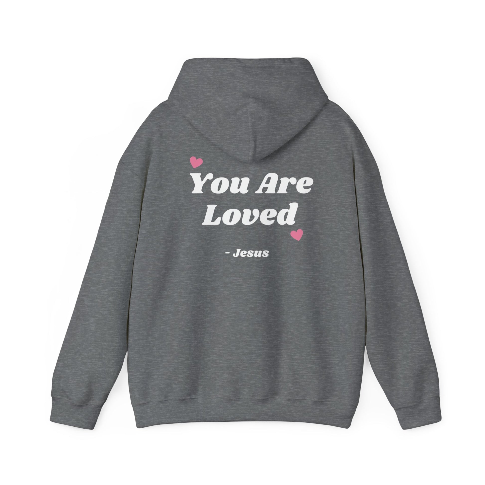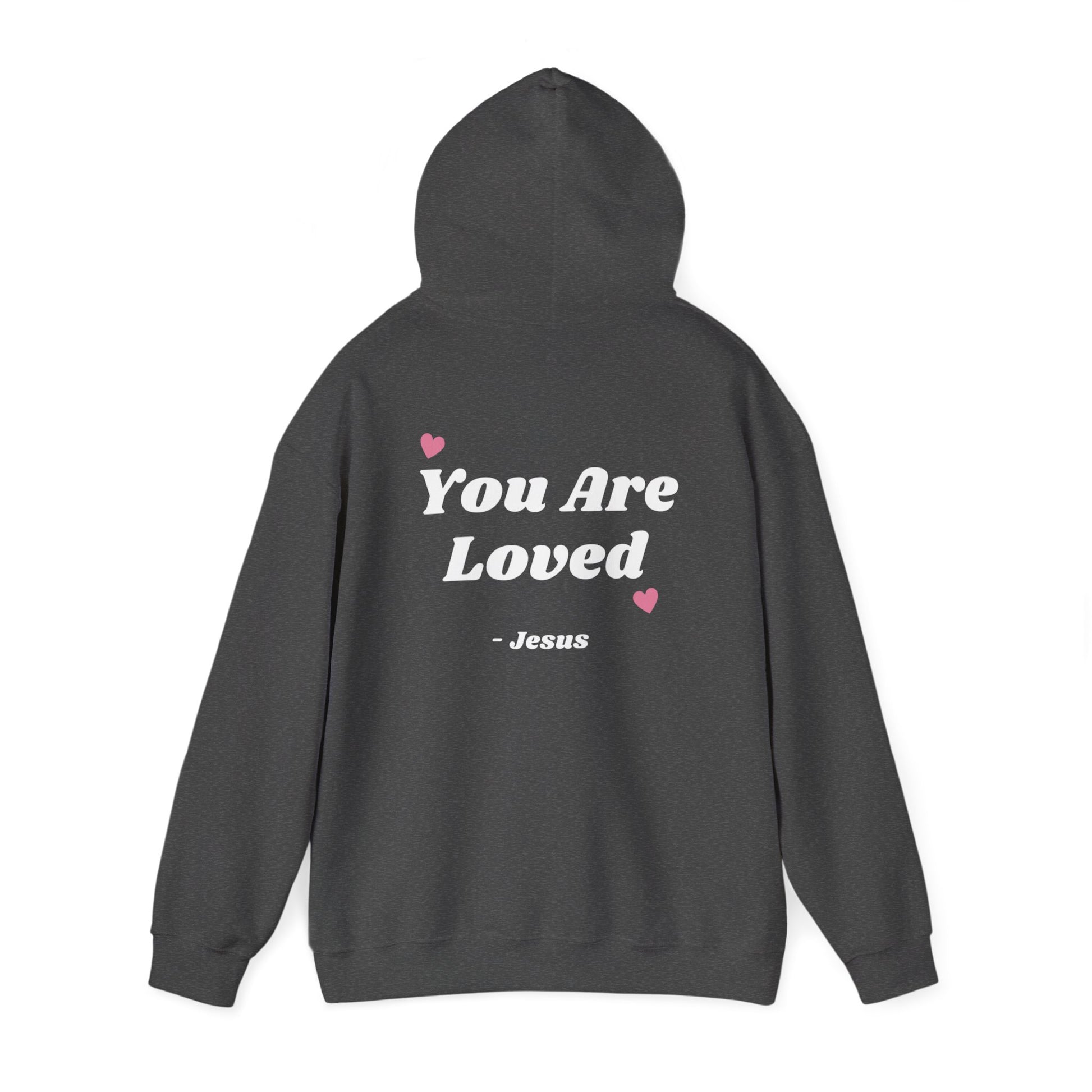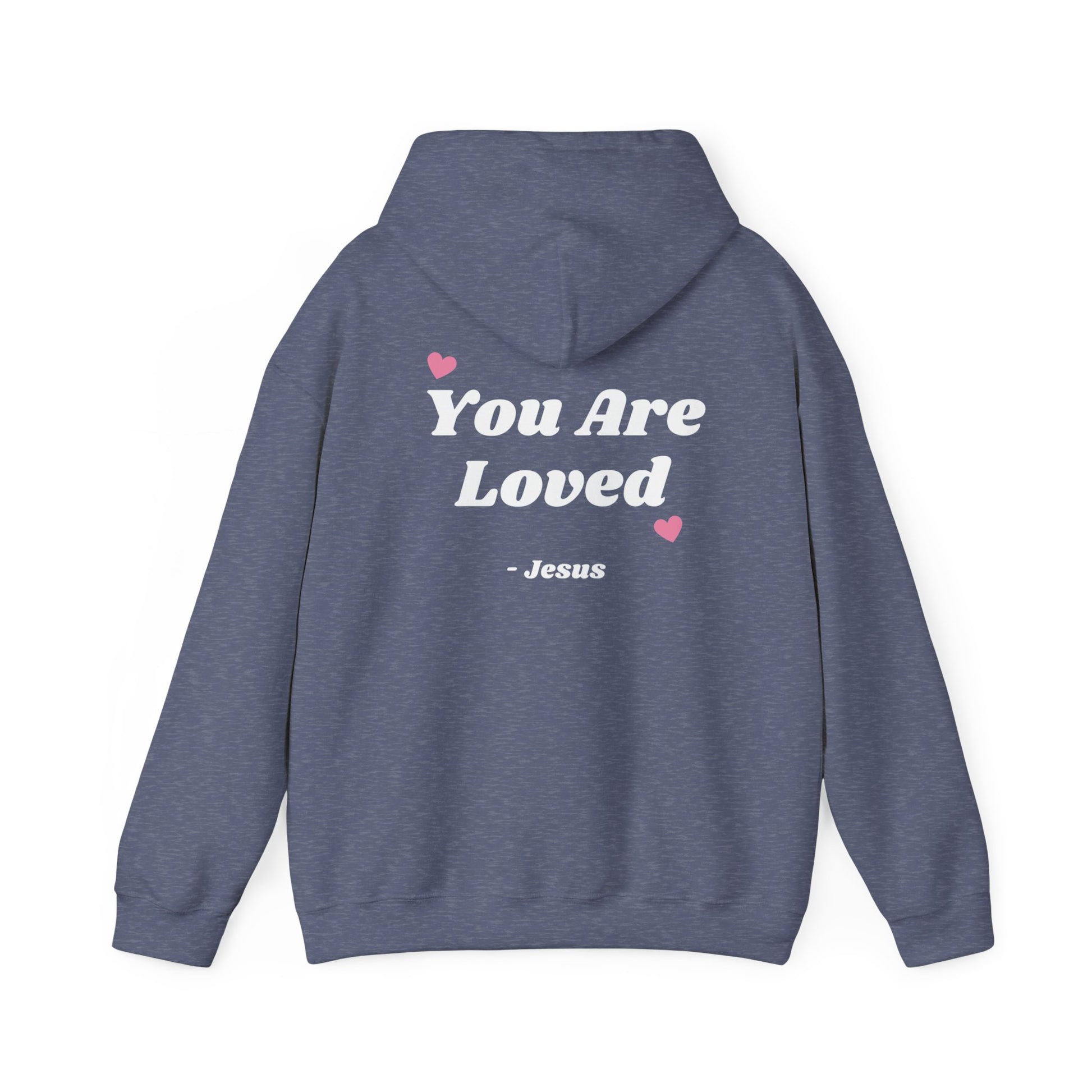 Stay cozy and stylish with this classic Unisex Heavy Blend™ Hooded Sweatshirt. Featuring a heartwarming message on the back, this hoodie radiates positivity and love. Perfect for casual outings, cozy nights in, or layering for a chilly day. Its spacious kangaroo pocket offers warmth for your hands, while the adjustable drawstring hood ensures a snug fit. Ideal for anyone looking to spread joy, this sweatshirt makes a thoughtful gift for friends, family, or yourself. Great for holidays like Valentine’s Day, motivational events, or any celebration that calls for a reminder that 'You Are Loved'. Embrace comfort and kindness in your everyday style!